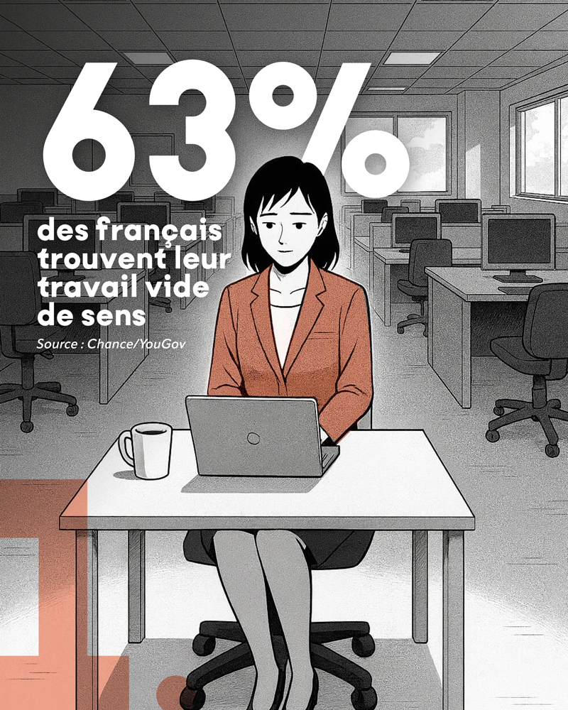 Ce paradoxe est devenu omniprésent. Selon une étude Chance / YouGov, 63 % des Français estiment que leur travail manque de sens et leur prend trop de temps. Cela ne dit pas seulement quelque chose sur le désengagement. Cela révèle un besoin de se réaligner, de s’écouter — un besoin d’intériorité que la cadence actuelle empêche souvent de nourrir. Le Baromètre Unédic / Elabe (2023) rappelle que le travail reste un pilier de vie pour 81 % des Français. C’est dire à quel point cette quête de sens n’a rien d’accessoire : elle est vitale.
